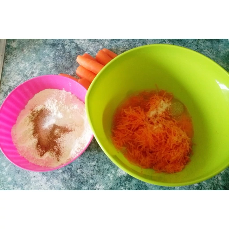 - A reszelt sárgarépát a tojásokkal, a cukorral és az olajjal elkeverjük