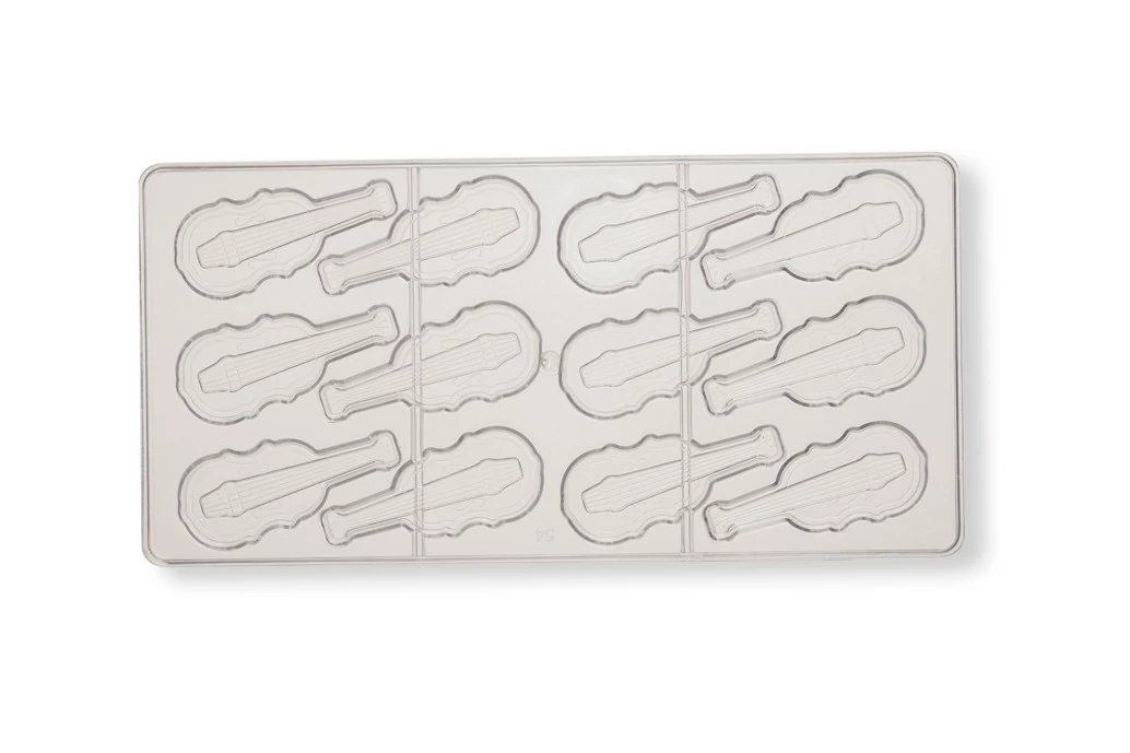 Ebben a 12 adagos hegedű alakú polikarbonát bonbon formában tökéletes csokikat készíthetsz!