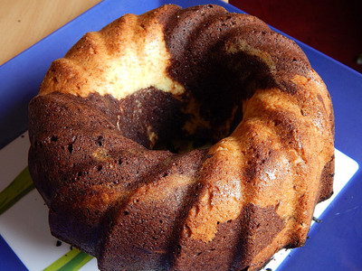 - Egy kuglóf formát előkészítünk (ha kell kivajazzuk, de szilikon kuglóf formánál ez nem szükséges) és váltakozva beleadagoljuk a kétféle masszát.